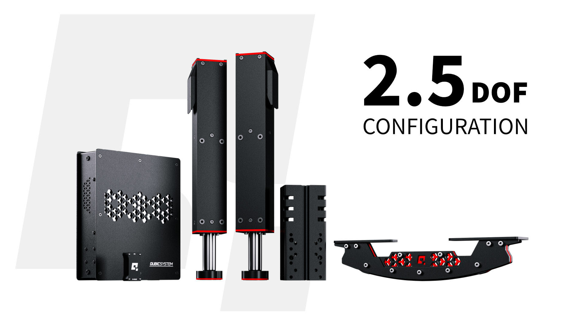 - The 2DOF system or the 2.5 DOF set can be upgraded to a 3DOF system with an additional QS-210 set (not included) - see corresponding sets